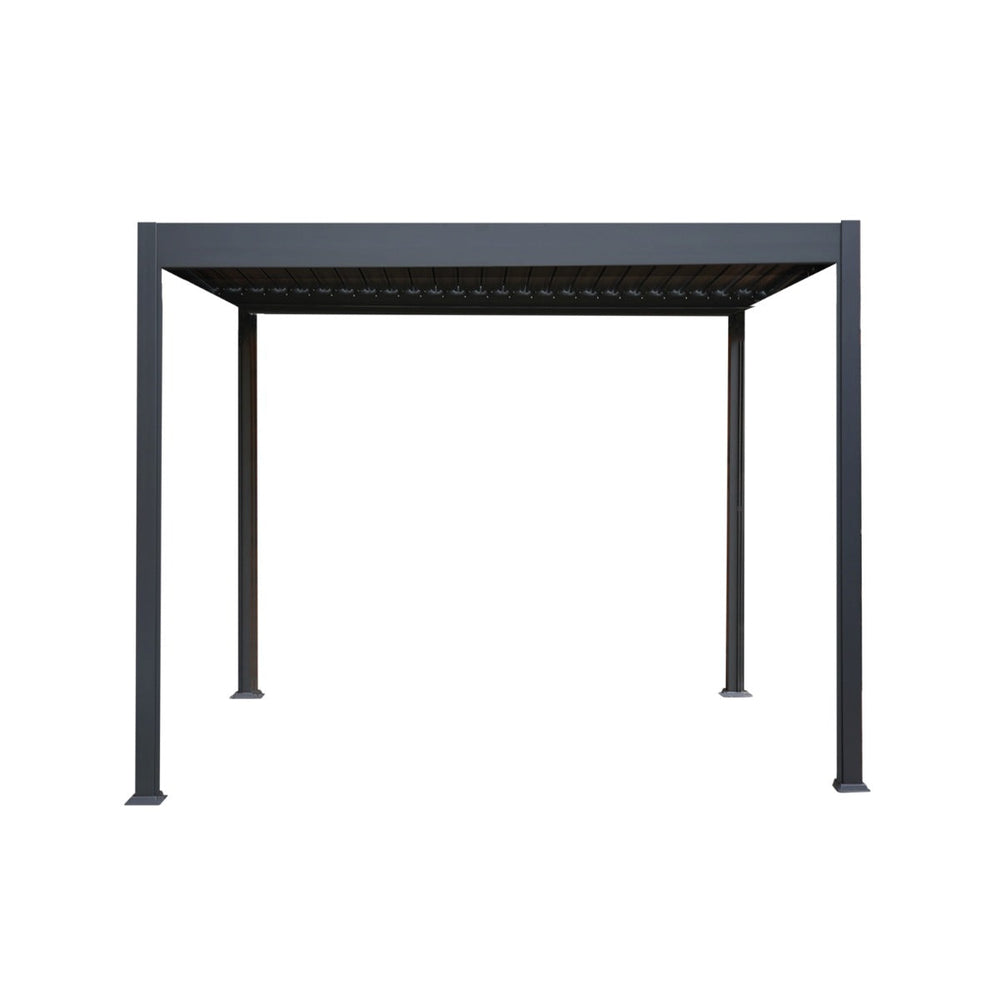 Crafted from high-grade aluminium with a sleek powder-coated grey finish, our pergola ensures exceptional strength and resilience against the elements. Whether placed on your patio, garden, or backyard, its modern design adds a touch of sophistication, becoming a captivating focal point for entertaining guests or unwinding in the open air.