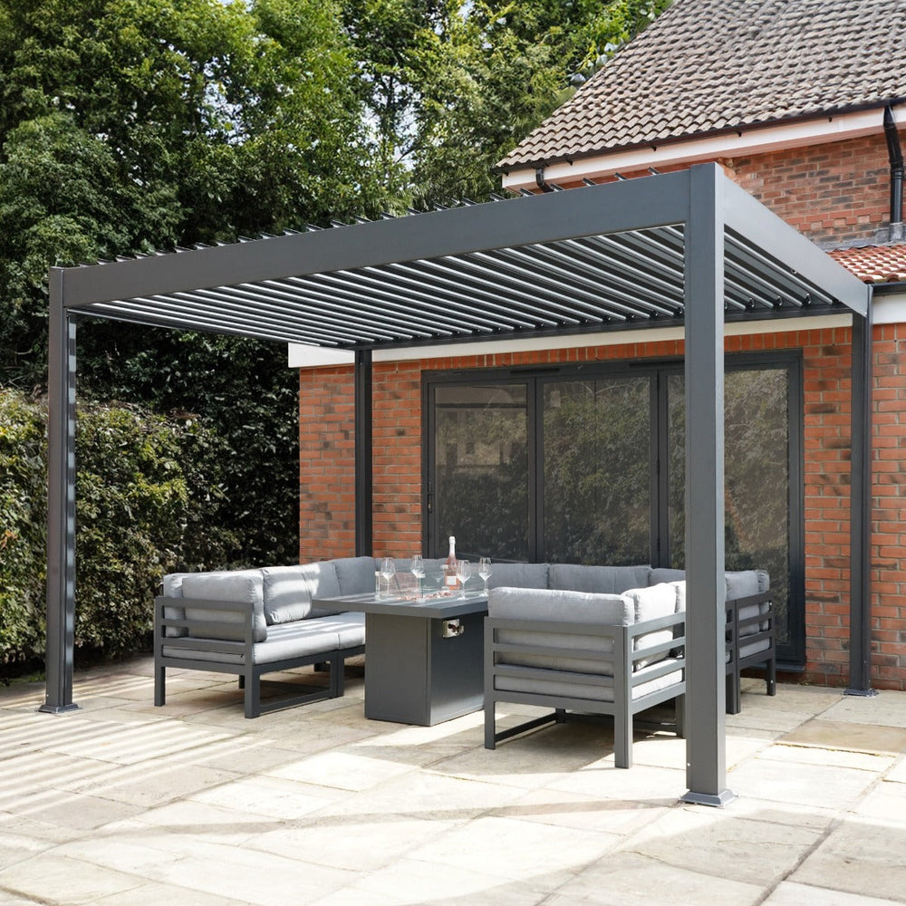 Crafted from high-grade aluminium with a sleek powder-coated grey finish, our pergola ensures exceptional strength and resilience against the elements. Whether placed on your patio, garden, or backyard, its modern design adds a touch of sophistication, becoming a captivating focal point for entertaining guests or unwinding in the open air.