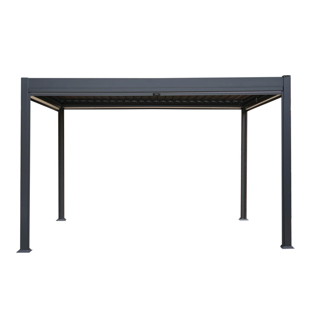 Step into contemporary elegance with our aluminium pergola, boasting four retractable blinds and adjustable LED lights for a tailored outdoor experience. Sized at 3m x 4m, it provides generous coverage while infusing your outdoor sanctuary with a touch of sophistication.