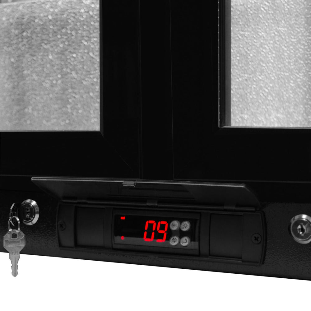 A robust stainless-steel casing provides exceptional durability and protection for your drinks while the double-glazed glass doors add a sleek twist on traditional fridges. The black powder coating makes this cooler super modern and allows it to perfectly blend into any environment.