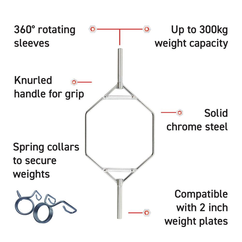 - EXPERTLY DESIGNED - The handles features a knurled grip design and are made from chrome steel to provide a greater level of grip which improves control during heavy deadlifts, shrugs and farmers walks.