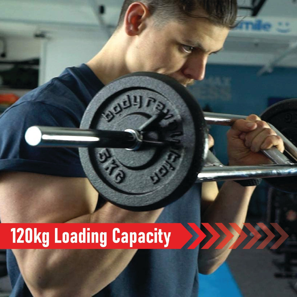 - WEIGHTLIFTING BARBELL BAR - Made of durable, heavy-duty solid chrome steel with a weight capacity of 120KG. This Hammer Curl barbell bar includes spring collars.