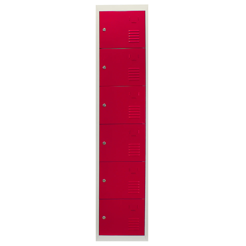 Offering a security space for up to six people, these steel lockers can be used separately or to fill a locker changing room, multiple units will help form your own office, gym or school locker room system.