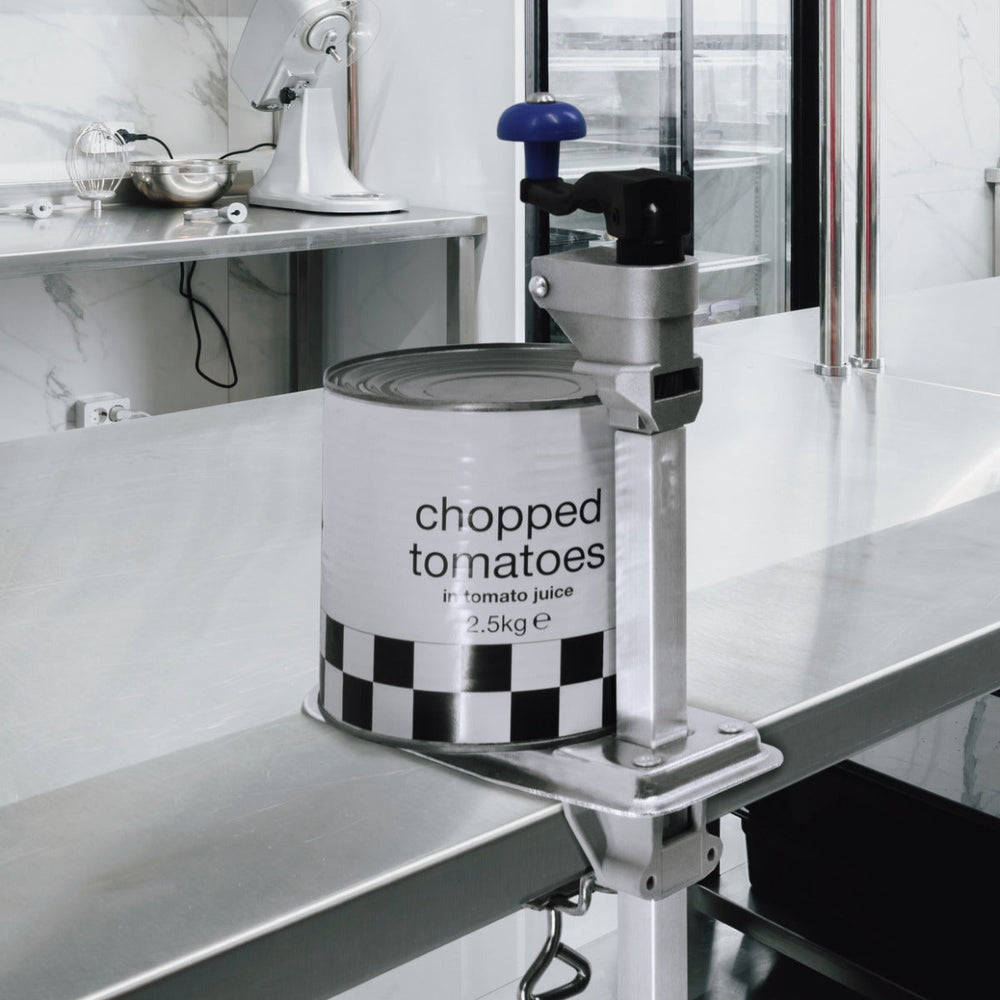 This professional tin opener is designed to effortlessly handle cans of up to 50cm in height, making it a versatile tool for your commercial kitchen. Its secure clamping mechanism makes sure it stays firmly in place on your table top, with the option to use included screws for added stability, ensuring a safe and efficient operation.