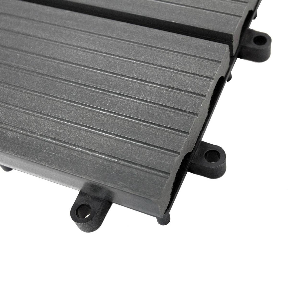 These high-quality WPC tiles feature quick connect interlocking function, which offers you easy and toolless installation. Made of quality wood plastic composite, our tiles are water resistant and very durable for years of use. With a durable plastic base, the decking remains off the floor to reduce water damage and rotting, keeping your tiles looking lovely for longer.