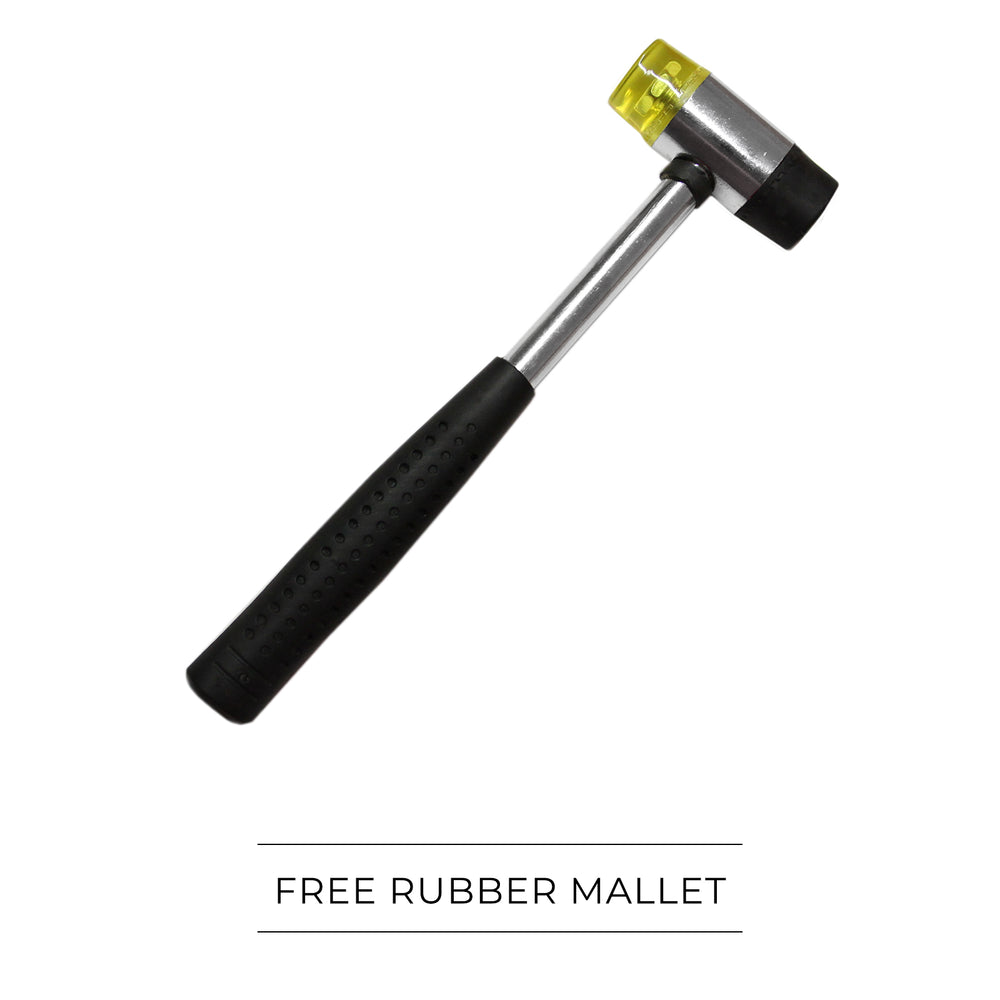 - FREE rubber mallet for easy assembly. Simply attach the boltless shelves together and use the rubber mallet to secure.