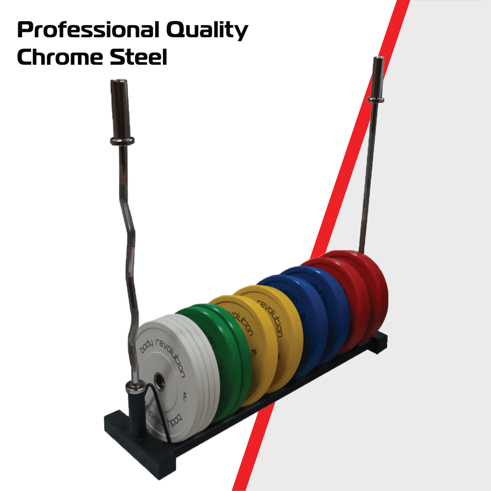 The Body Revolution Olympic weight plate rack has been designed as an all-in-one unit to house Olympic bumper weight plates and 2 Olympic barbells, ideal for home gyms where space might be at a premium!