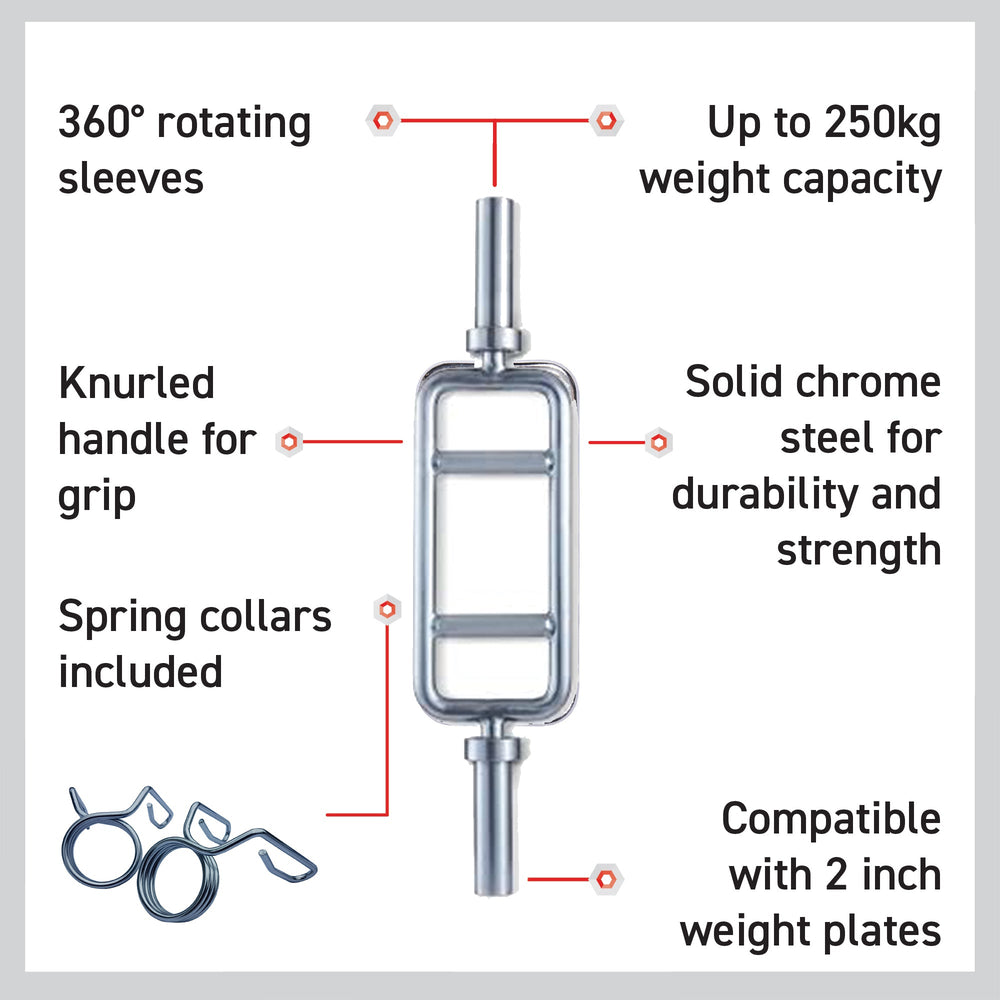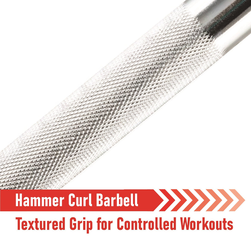 - WEIGHTLIFTING BARBELL BAR - Made of durable, heavy-duty solid chrome steel with a weight capacity of 120KG. This Hammer Curl barbell bar includes spring collars.and weighs 10kg