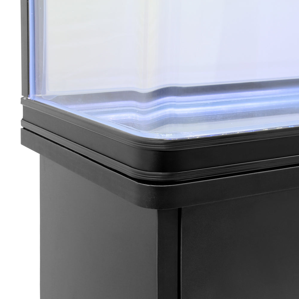 Coming with a stylish matching matt black cabinet underneath, with plenty of room to store your supplies within the two-door space, the aquarium itself features a lovely black trim and an incredible curved glass exterior. The 11mm thick glass gives you perfect transparency and a 180° view of your beloved fishy friends. Stability is also provided with fitted feet at the bottom of the cabinet, making it perfect for all types of flooring.