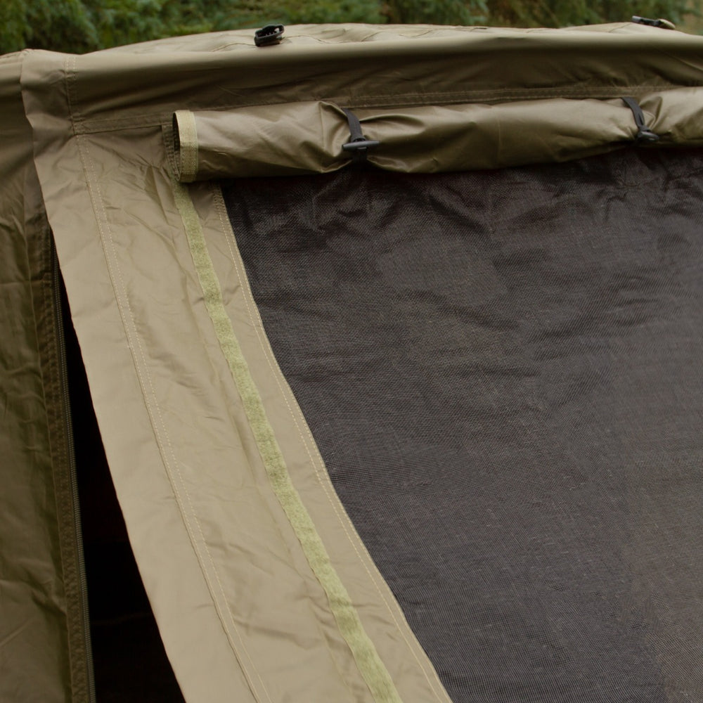 The spacious interior allows for ample living and storage for two anglers and can easily accommodate fishing furniture like seats and bed chairs with plenty of room left over for tackle. For added convenience, rod straps have been fitted to the hood for easy storage of your rods when they’re not in use. The provided removable neoprene and PVC shoe mat fits perfectly in the doorway of your bivvy both indoors or outdoors; the perfect solution to keeping your interior space nice and clean no matter the weather conditions.