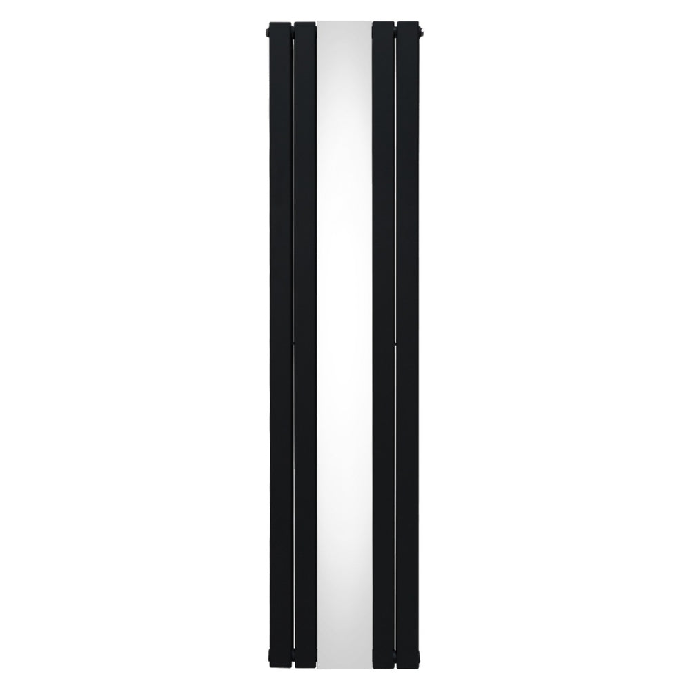 Infuse warmth into your home with our cutting-edge flat panel vertical radiator in black with a sleek central mirror - a perfect blend of timeless elegance and modern efficiency.