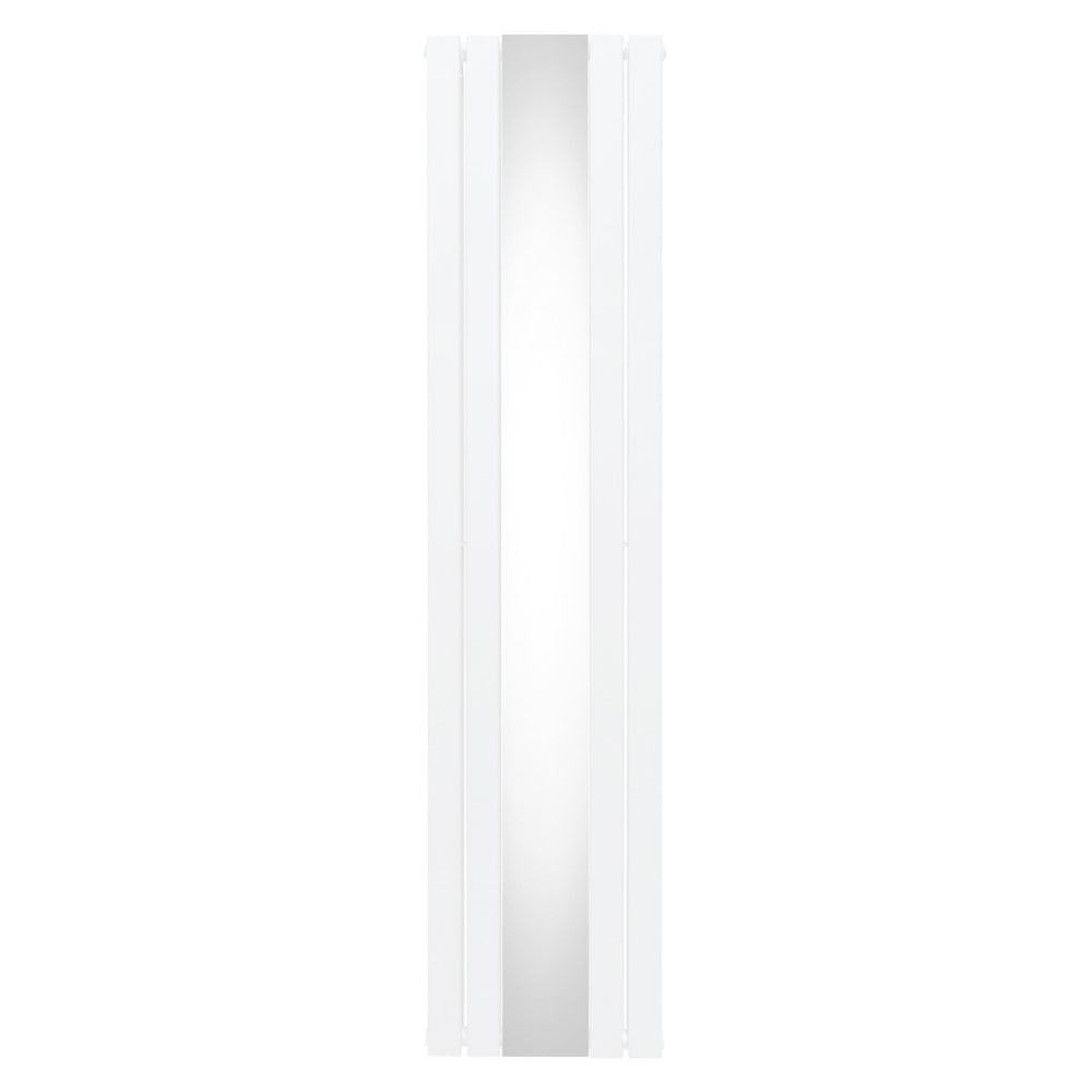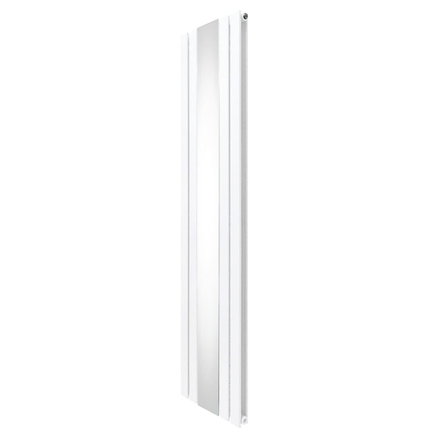 Infuse warmth into your home with our cutting-edge flat panel vertical radiator in white with a sleek central mirror - a perfect blend of timeless elegance and modern efficiency.