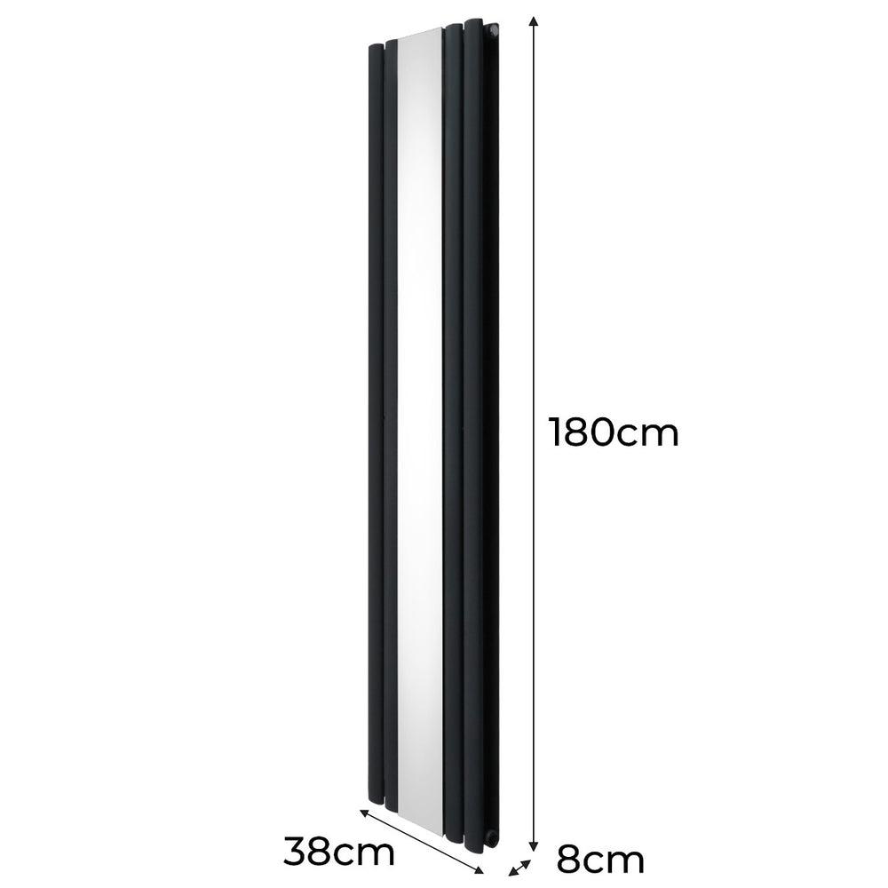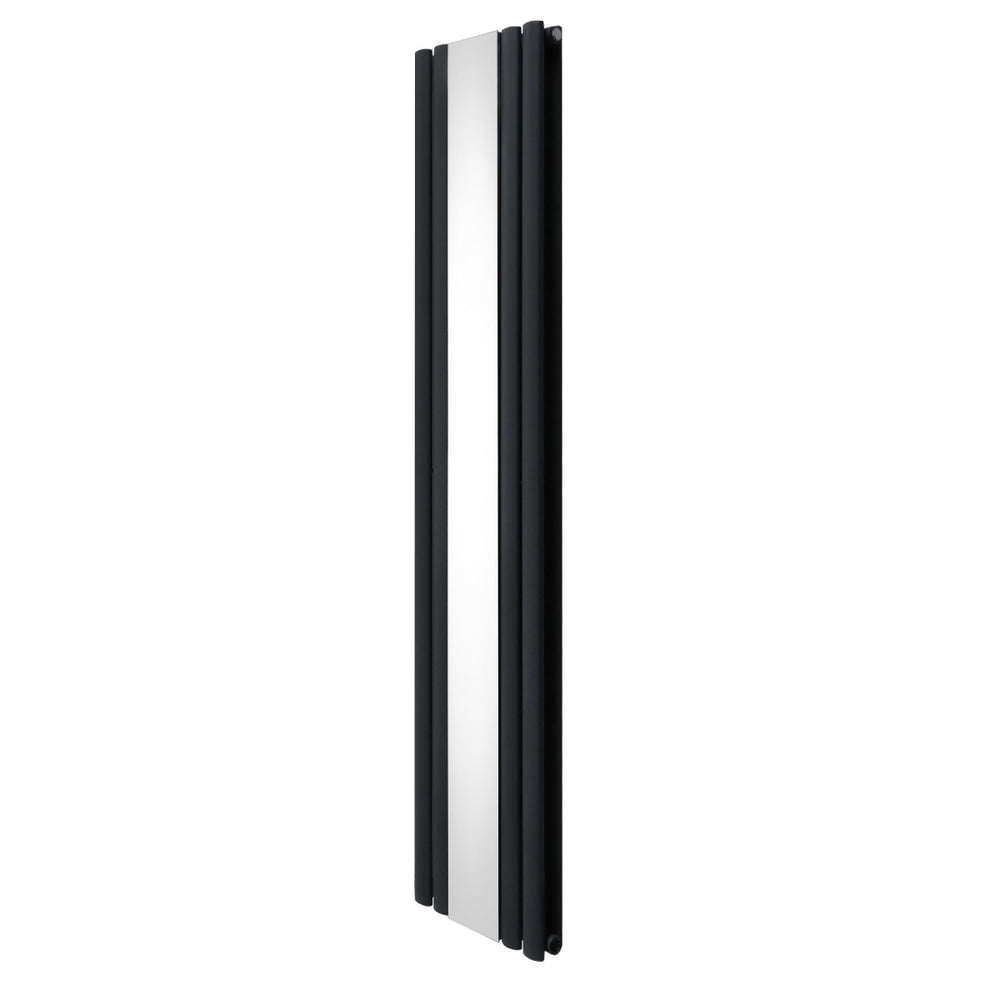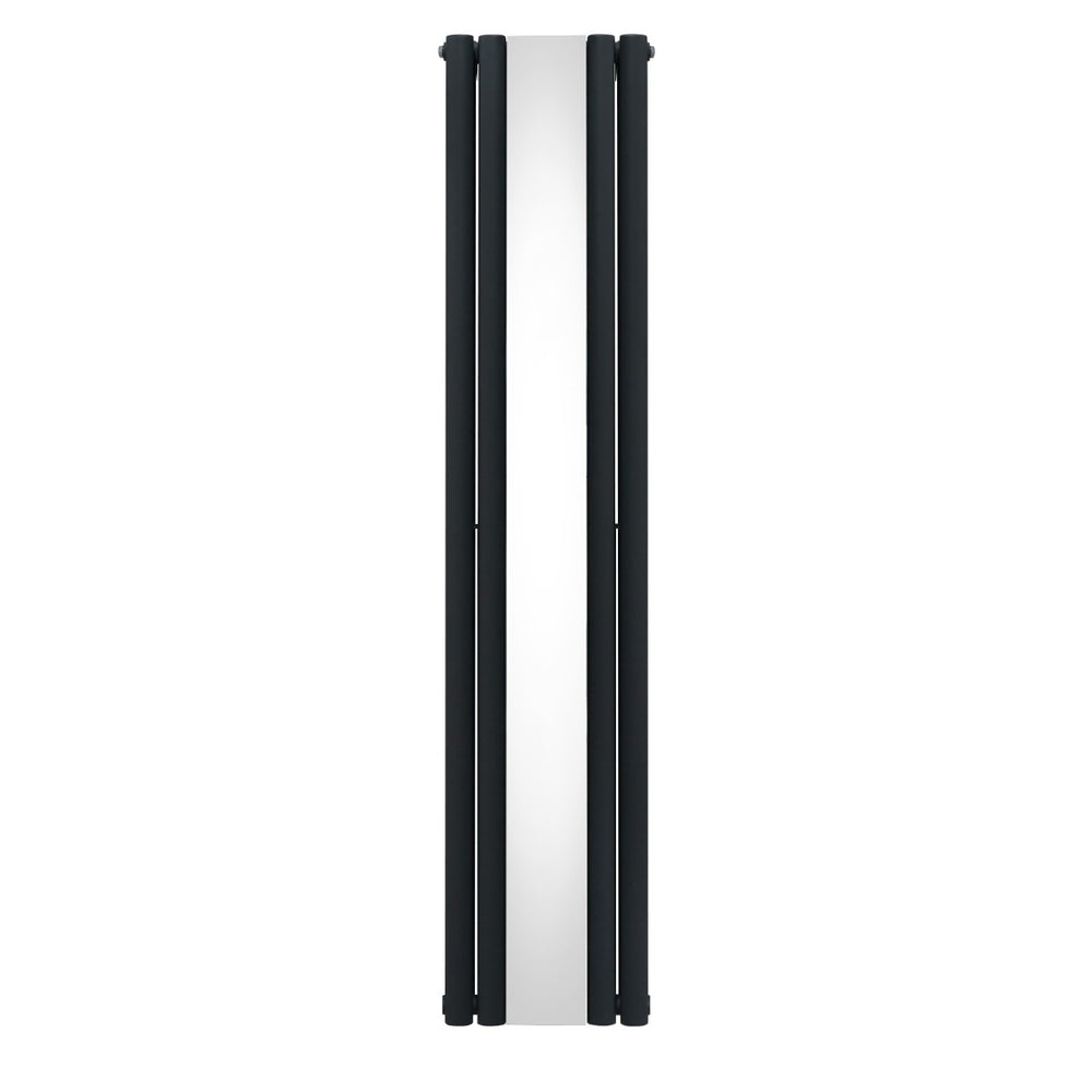 Infuse warmth into your home with our cutting-edge oval panel vertical radiator in anthracite grey with a sleek central mirror - a perfect blend of timeless elegance and modern efficiency.