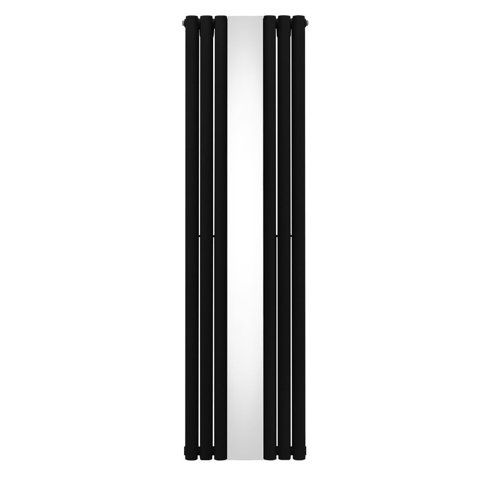 Infuse warmth into your home with our cutting-edge oval panel vertical radiator in black with a sleek central mirror - a perfect blend of timeless elegance and modern efficiency.