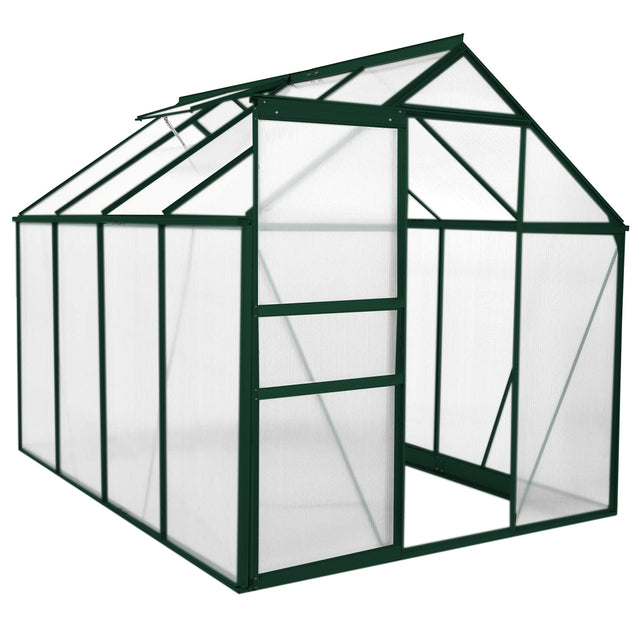 This glorious greenhouse is constructed with a thick aluminum frame and high-density polycarbonate sheets. The shatterproof twin wall pc sheets help protect your plants from UV rays, whilst letting you admire their beauty from the outside.
