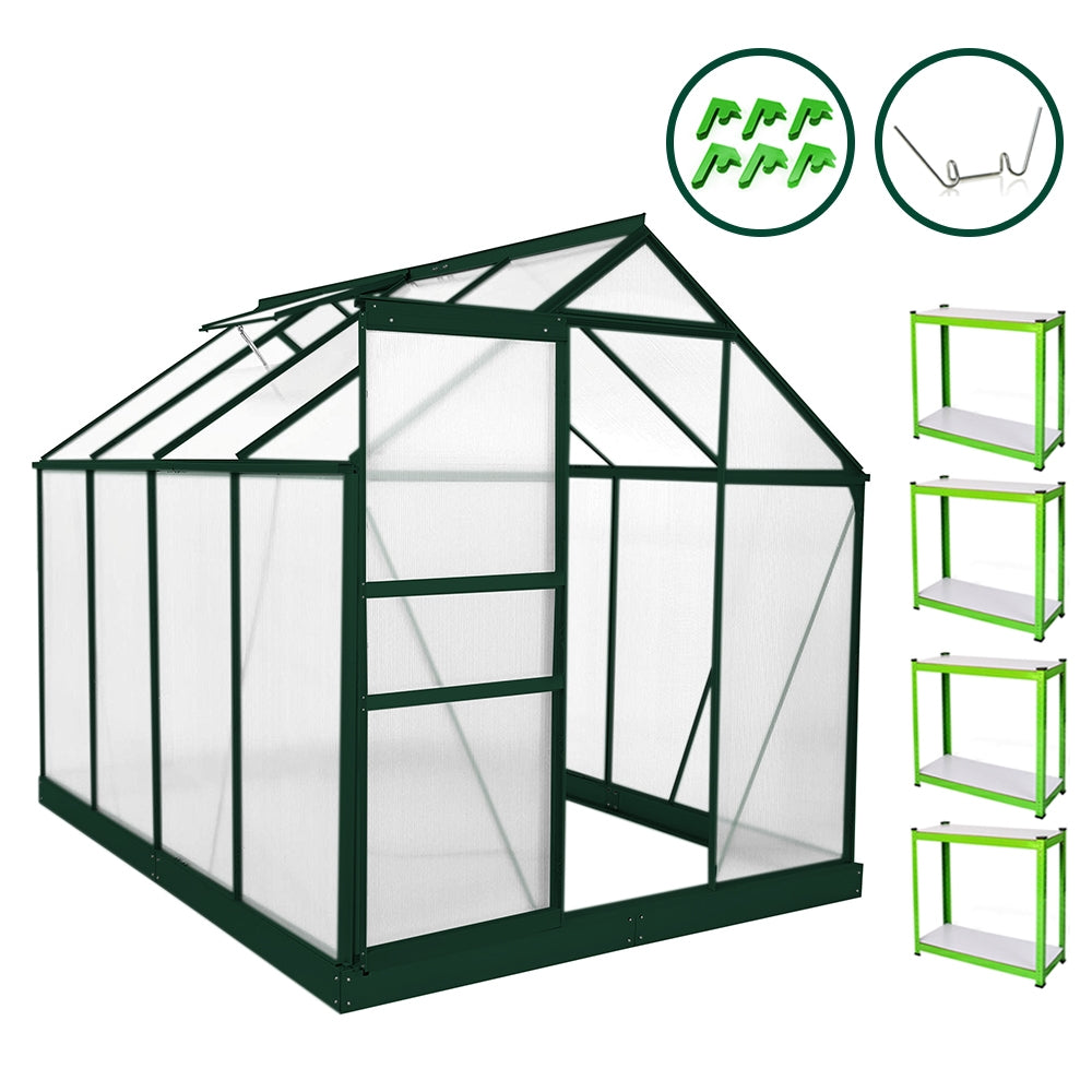 Greenhouse 6ft x 8ft (Green) With Base & Racking