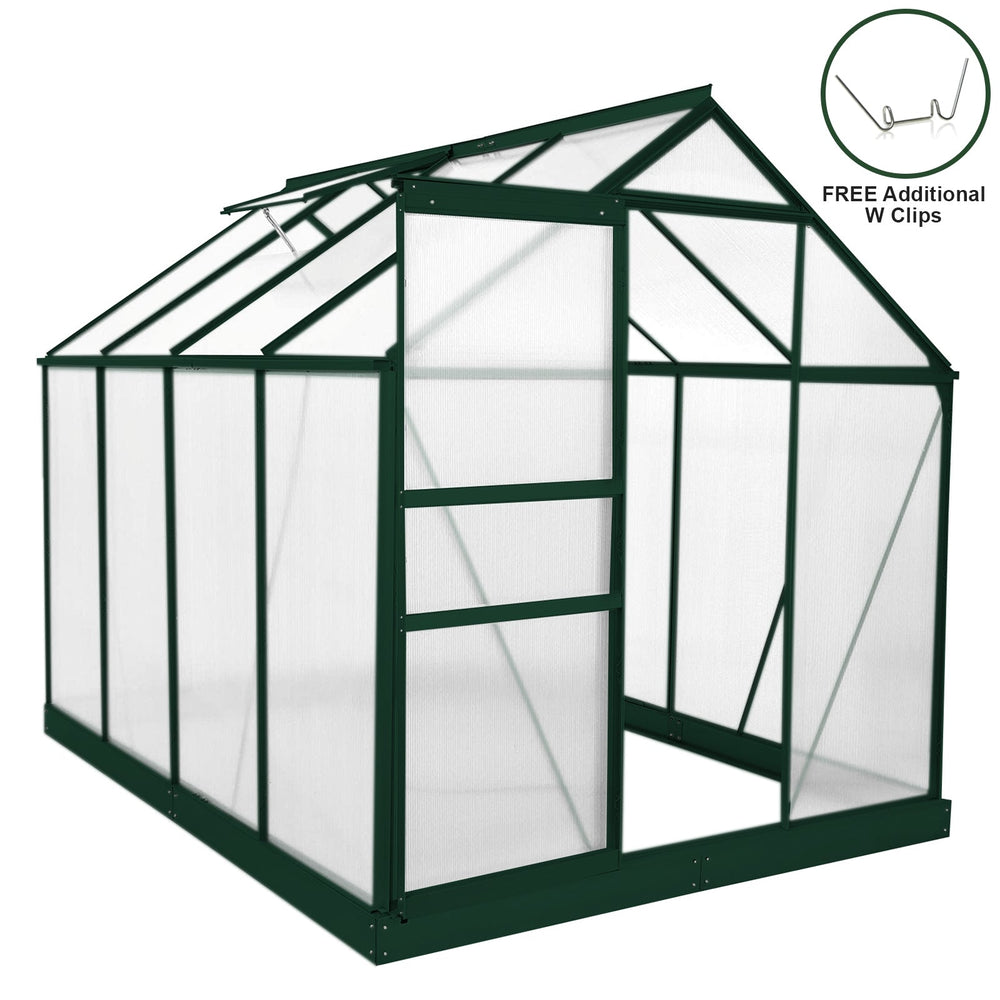 Greenhouse Polycarbonate 6ft x 8ft With Base (Green)