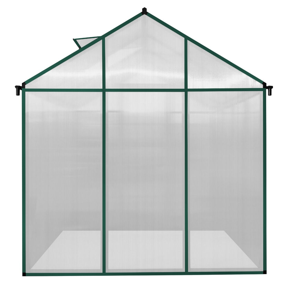 The stunning powder coated green aluminium frame creates a durable structure whilst the shatterproof polycarbonate panels ensure the vegetables and plants inside are protected year-round in all weather conditions. Plastic connectors between each of the aluminium poles aid a more robust framework while the polycarbonate sheets are pit mounted for a sturdier fit. The transparent finish of the twin wall glazing allows natural sunlight to pass through whilst diffusing harmful UV rays for excellent growth. Weather resistant properties make sure this greenhouse will maintain its effectiveness and attractive appearance for years to come.