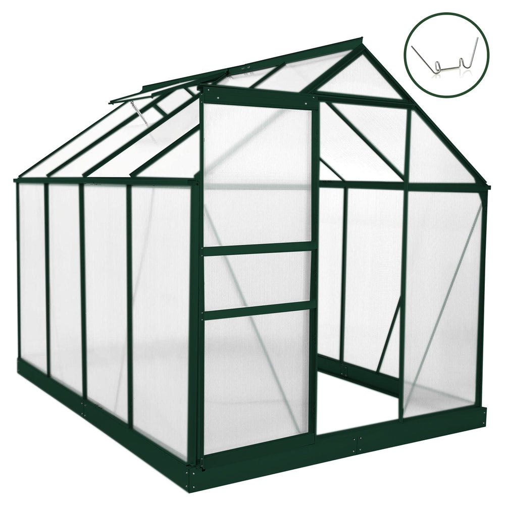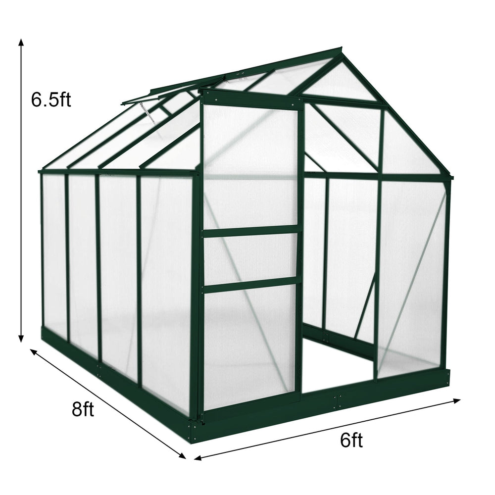 Greenhouse Polycarbonate 6ft x 8ft With Base (Green)