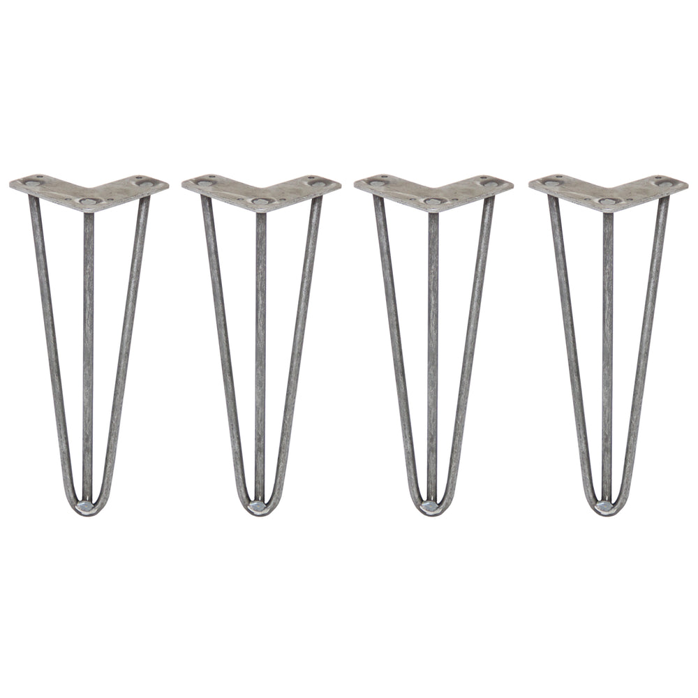 4 x 12" Hairpin Legs - 3 Prong - 10mm - Raw Steel