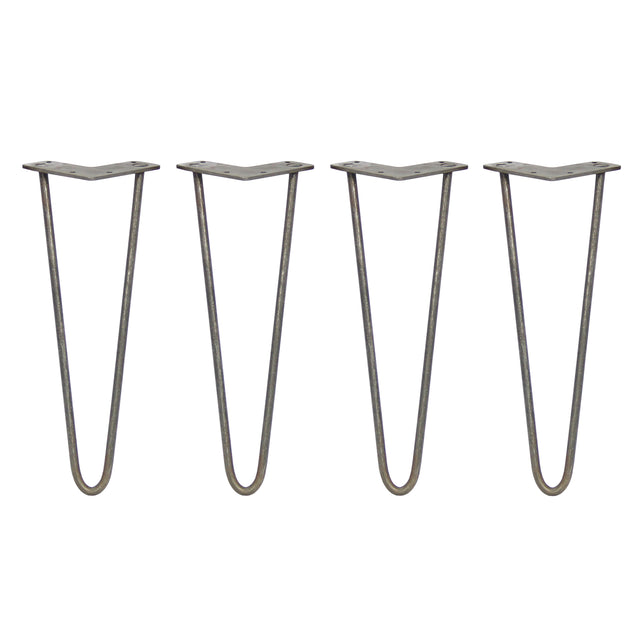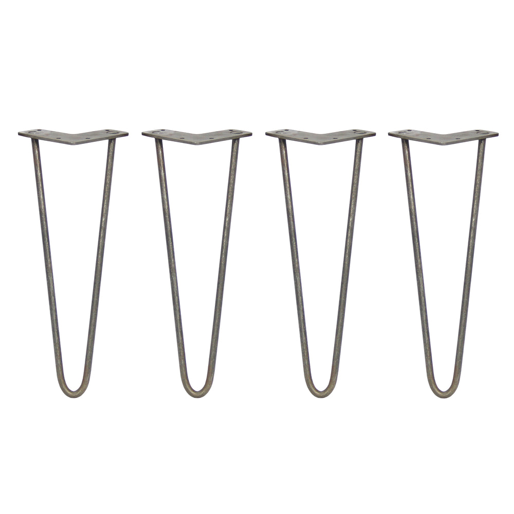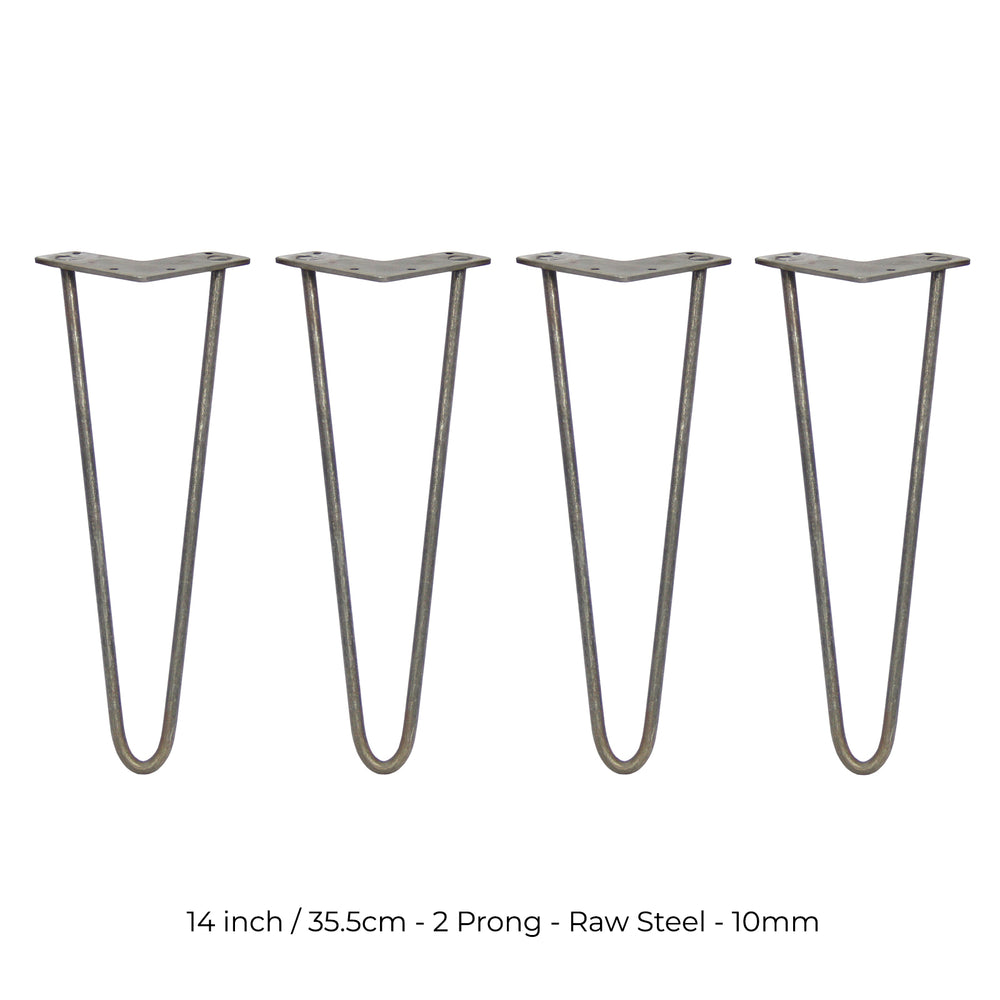 4 x 14" Hairpin Legs - 2 Prong - 10mm - Raw Steel