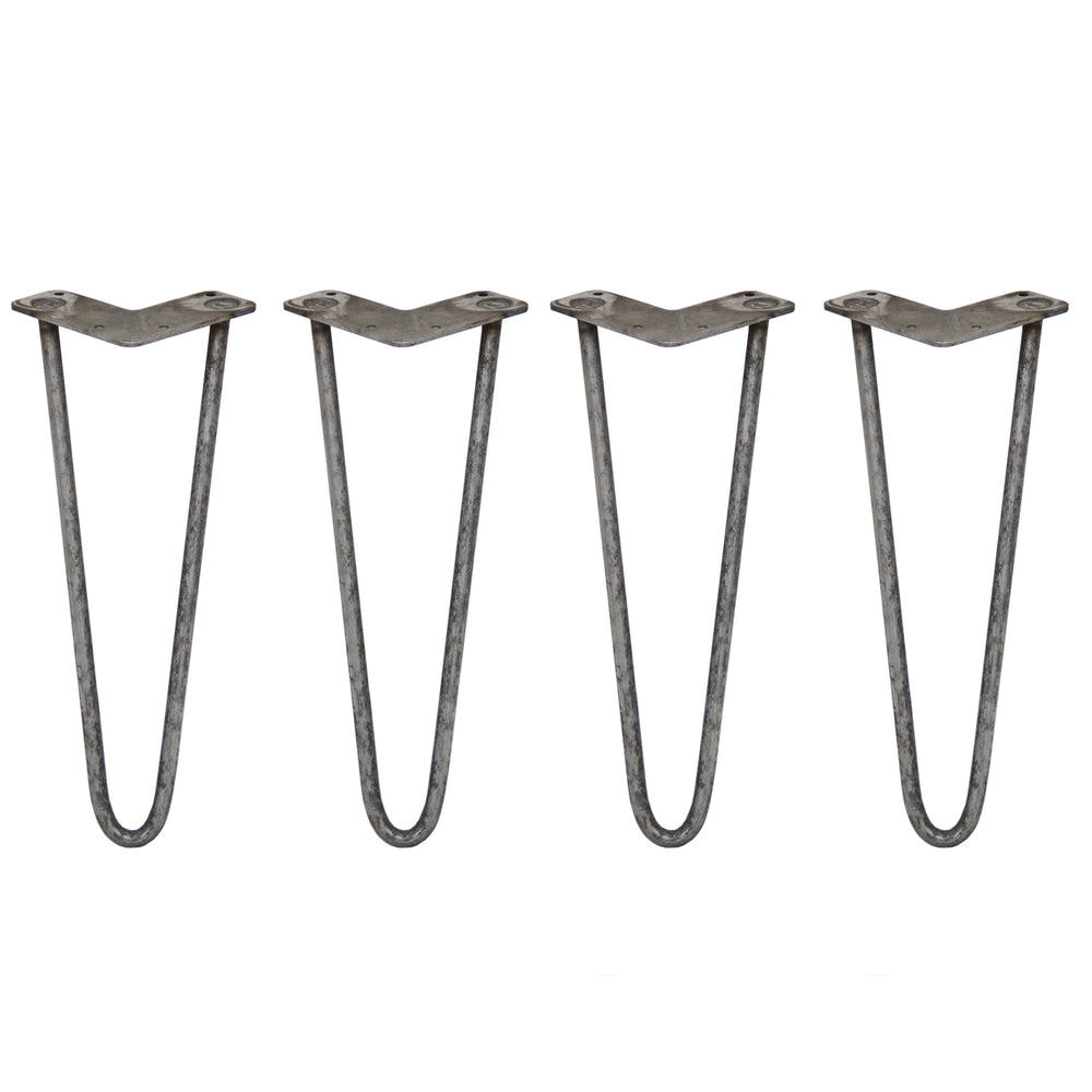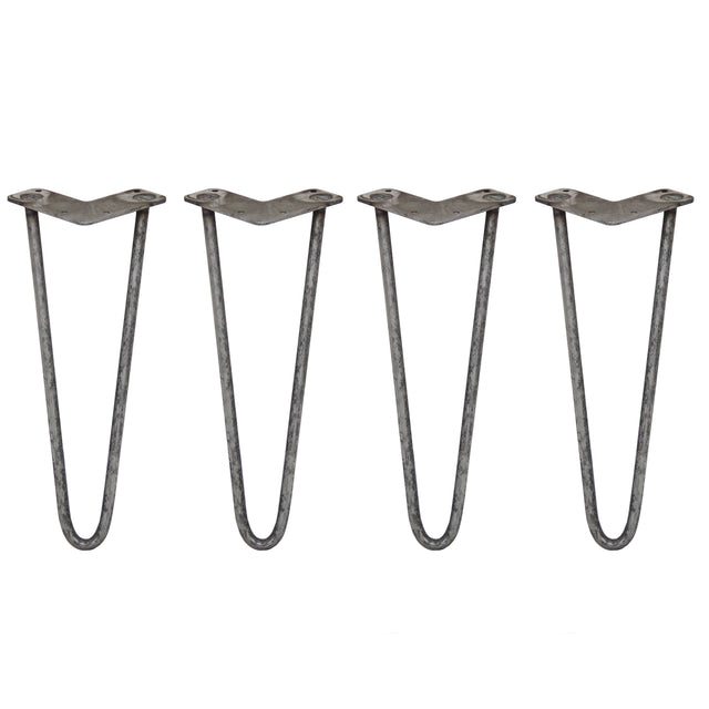 4 x 14" Hairpin Legs - 2 Prong - 12mm - Raw Steel