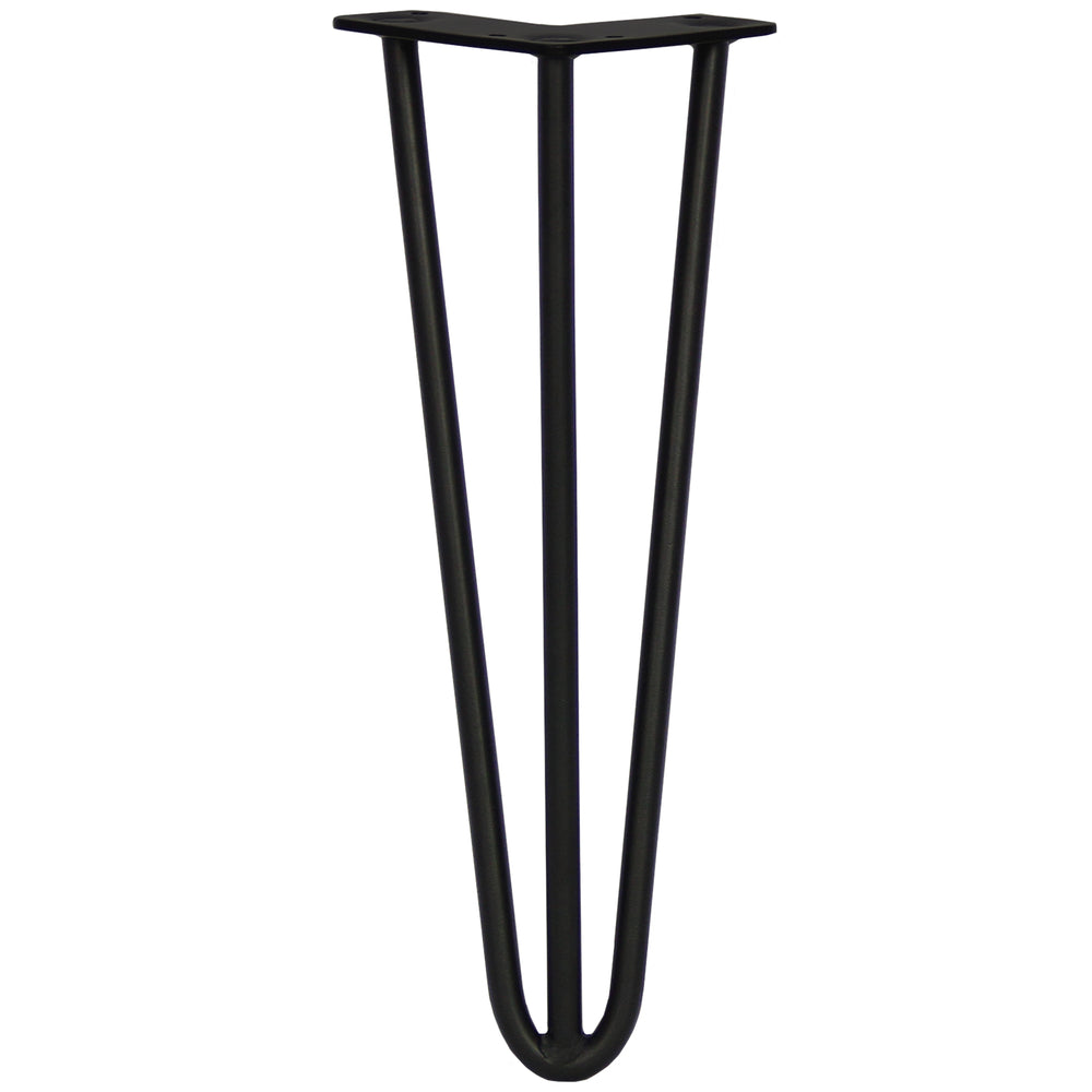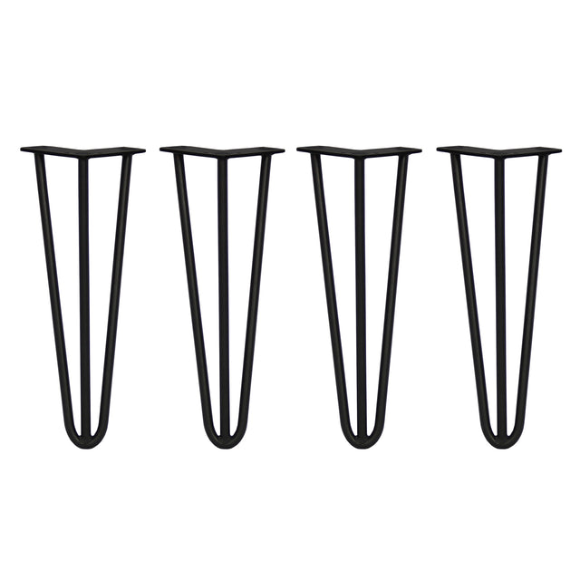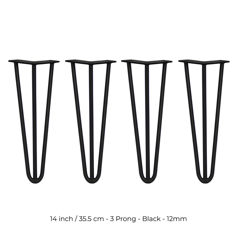 4 x 14" Hairpin Legs - 3 Prong - 12mm - Black
