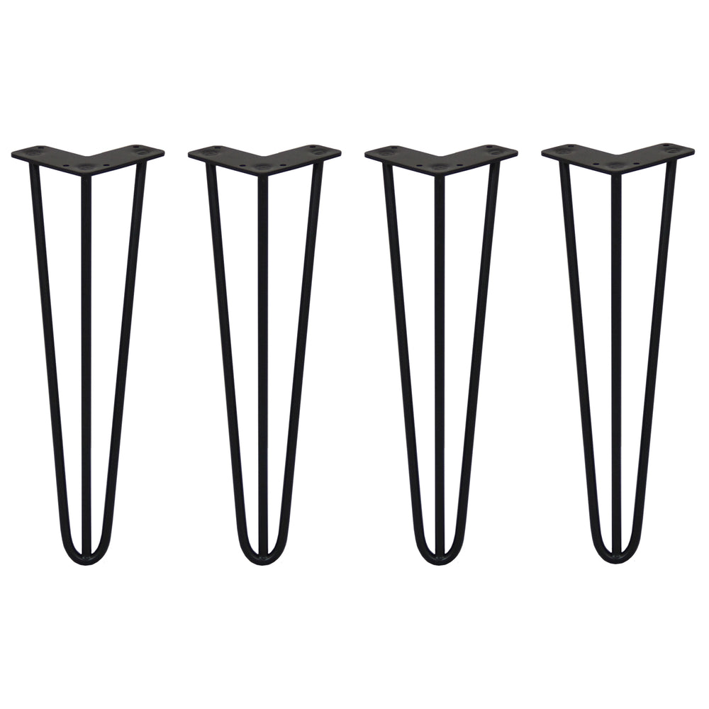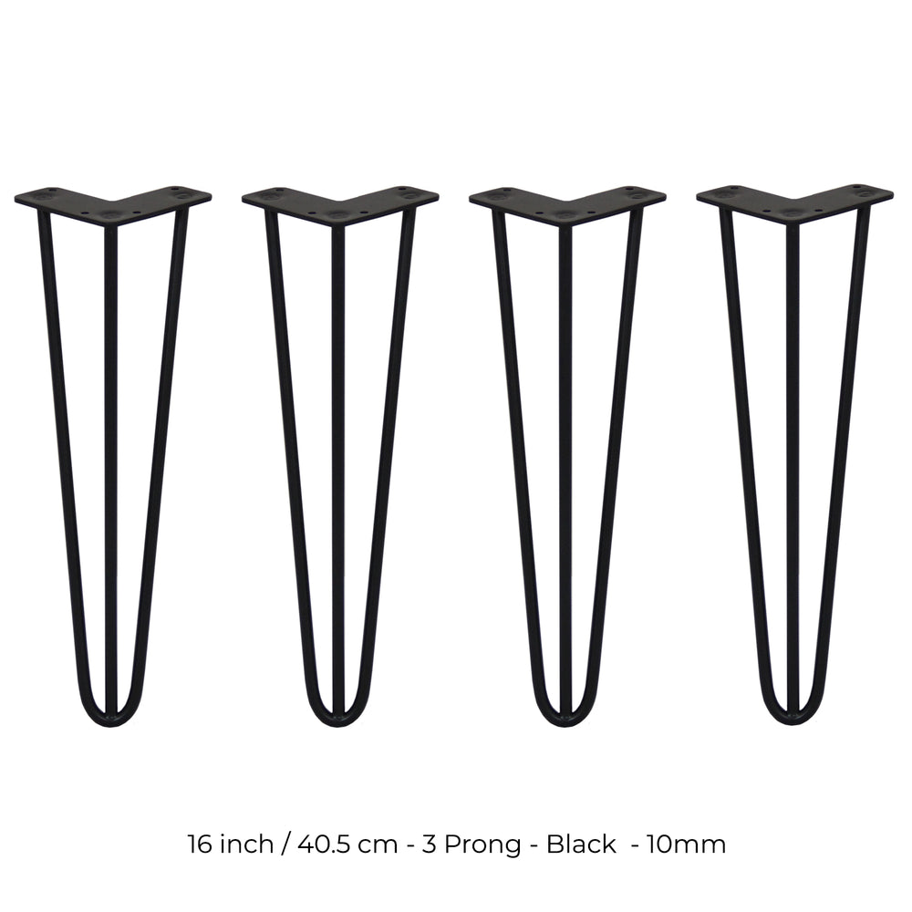 4 x 16" Hairpin Legs - 3 Prong - 10mm - Black