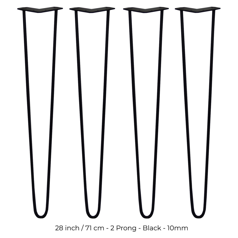 4 x 28" Hairpin Legs - 2 Prong - 10mm - Black