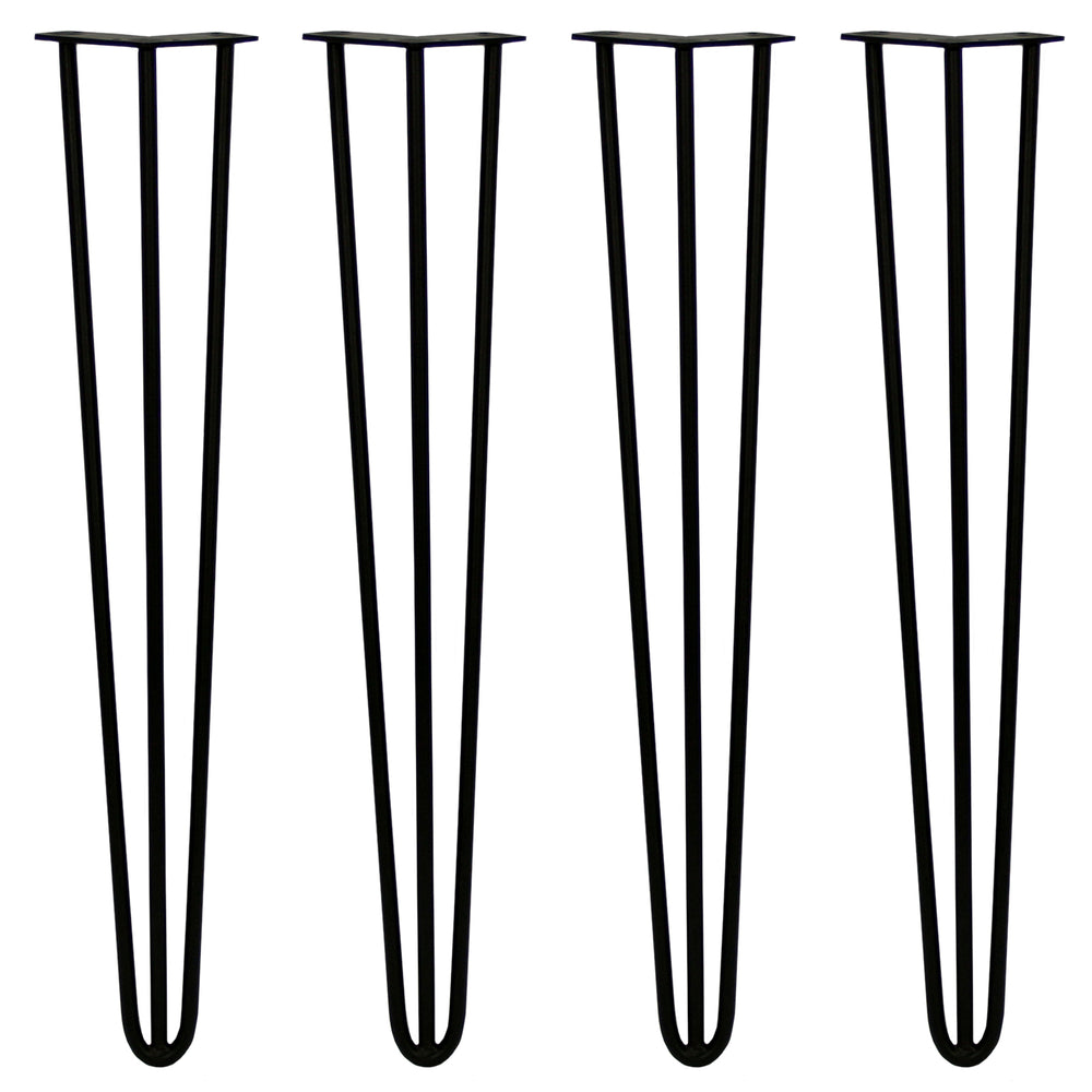 4 x 28" Hairpin Legs - 3 Prong - 12mm - Black