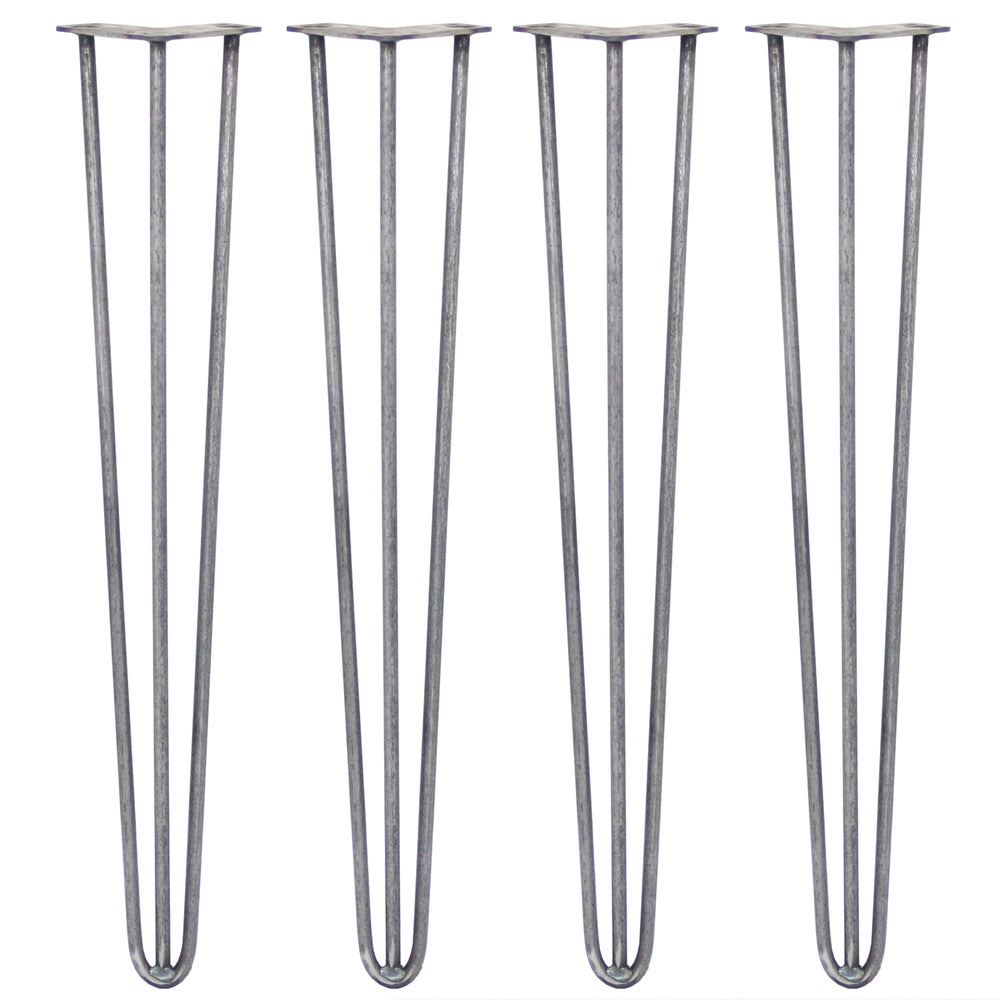 4 x 28" Hairpin Legs - 3 Prong - 12mm - Raw Steel