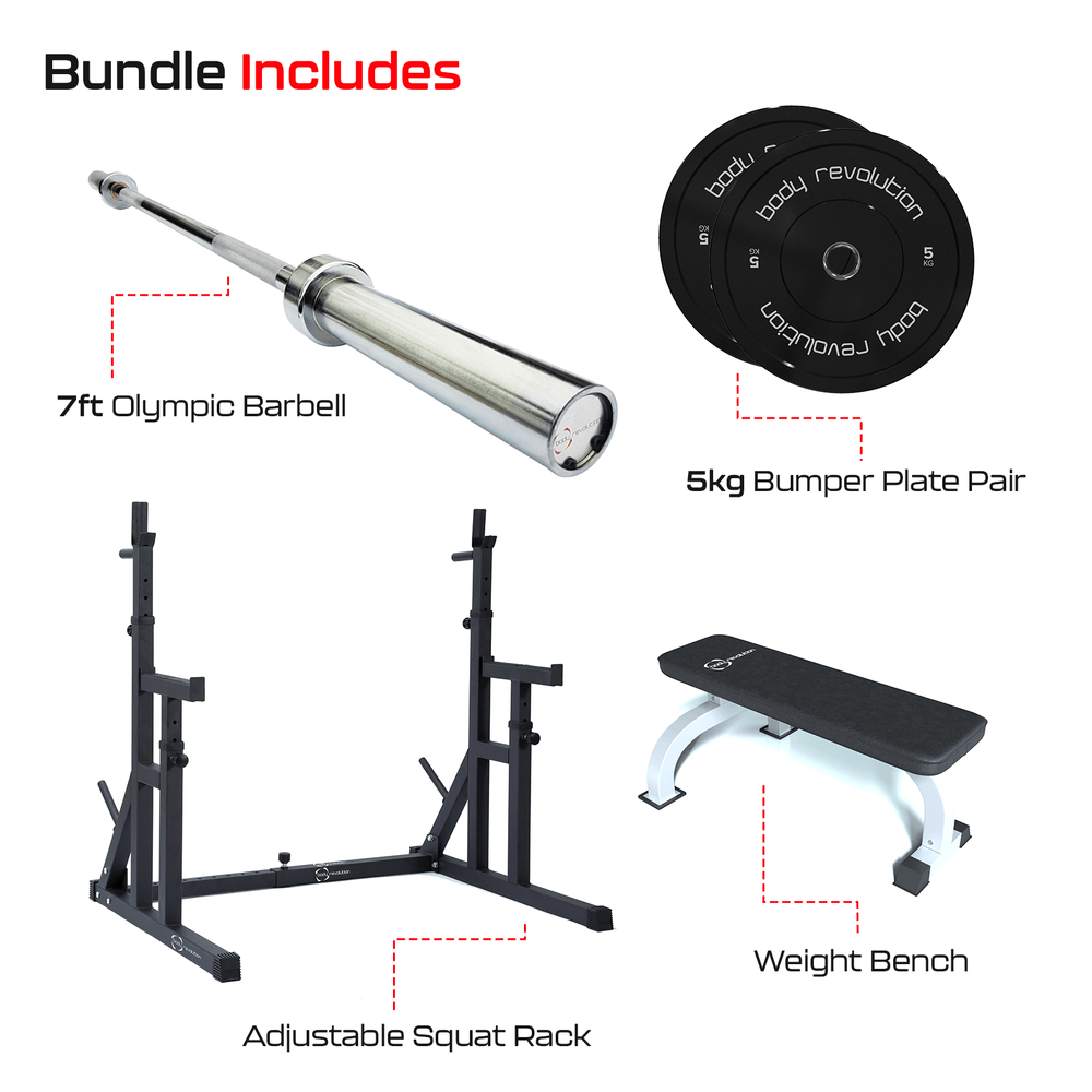 Home Gym Weightlifting Bundles - Squat Rack + Flat Weight Bench Set is backordered and will ship as soon as it is back in stock.
