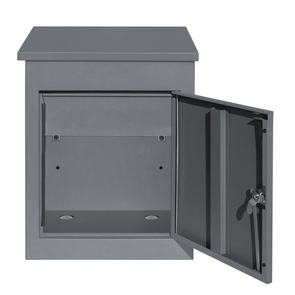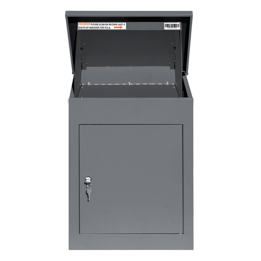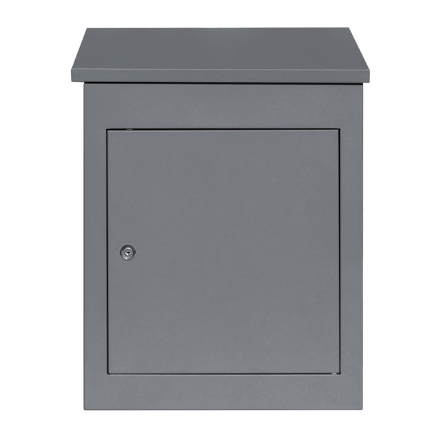 This secure parcel post box makes use of 1.3mm thick galvanised steel to form a strong structure and is topped with a durable powder coating to give it a stunning grey finish that is extremely weather resistant. To further the waterproof properties, the drop box benefits from a sloped roof which encourages water to run off keeping your post dry.