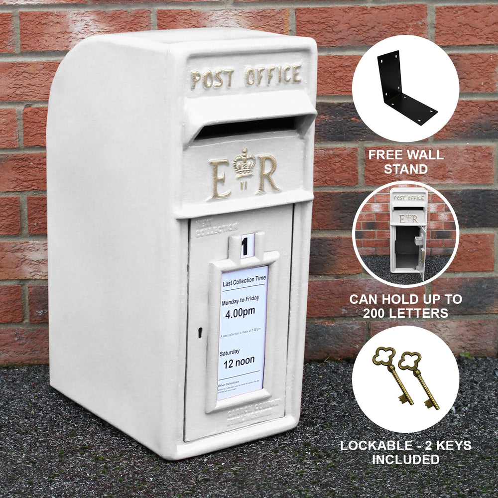 - Authentic white Royal Mail post box perfect for outside your main entrance, garden or special event