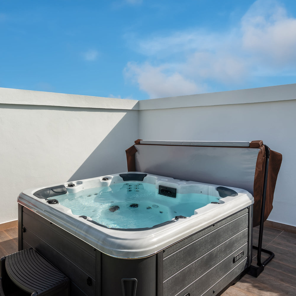 Blending functionality, safety, and style, this hot tub cover adds an extra layer of ease to your hot tub experience. With its stylish brown leather finish, it effortlessly complements any outdoor decor, adding a touch of elegance to your hot tub space.