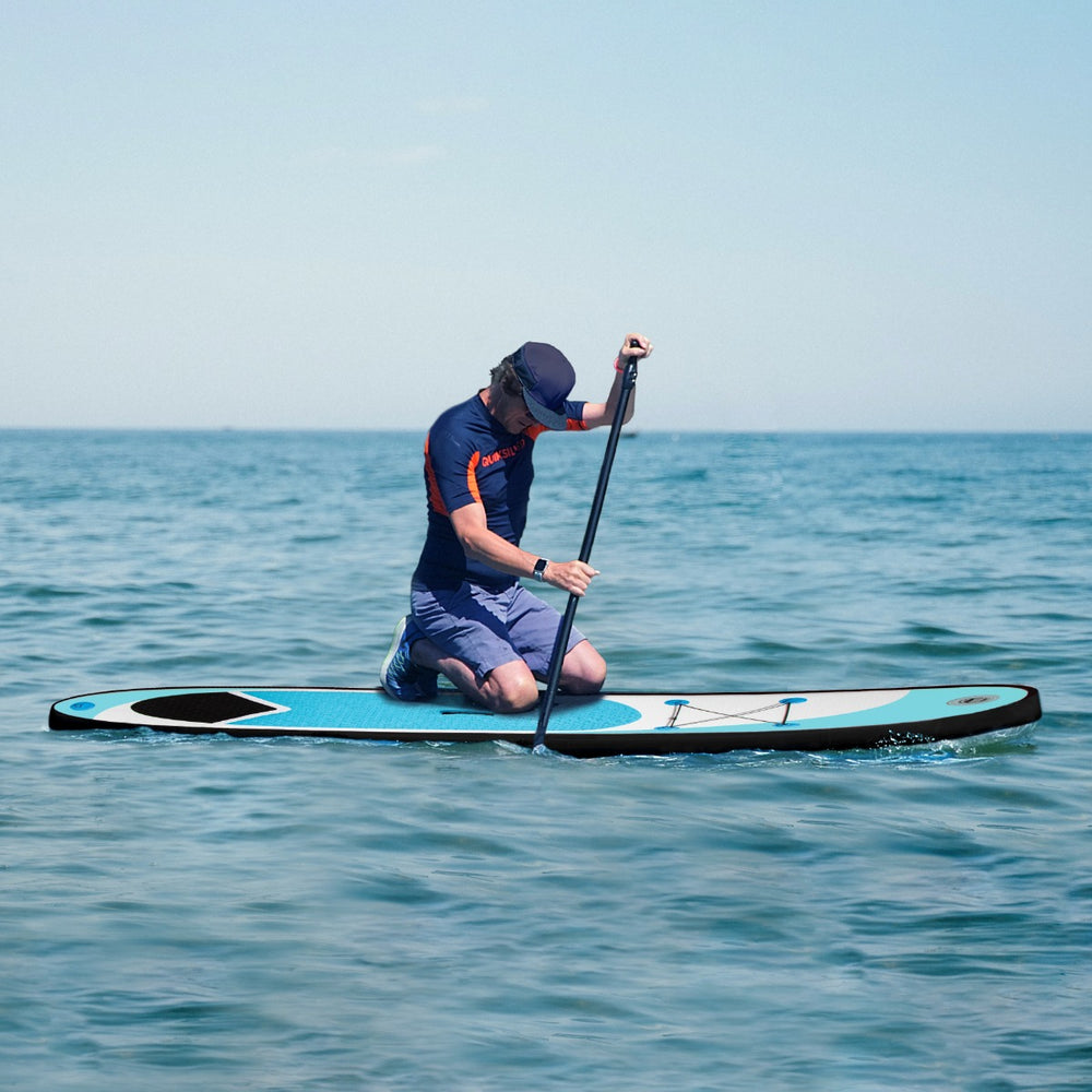 This 10ft inflatable SUP comes with everything you need to transport it, inflate it, and hit the open water, including a large durable carry bag, hand pump with pressure gauge, and repair kit. It also comes with an aluminium oar which is adjustable between 170cm and 220cm in length for the most comfortable use depending on your height. Simply click the three pieces together for a quick setup. Due to the incredibly light material, the oar is easy to handle and benefits from the ability to float for easy retrieval if you drop it in the water.
