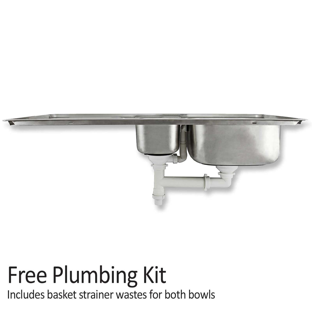 We're also including a plug-less basket strainer waste kit for both plug holes - just push it to seal it or pull it to release water, all whilst keeping food debris from clogging up your sink. Plus you get a FREE plumbing kit, tap hole cover plate, clips and rubber sealing strips.