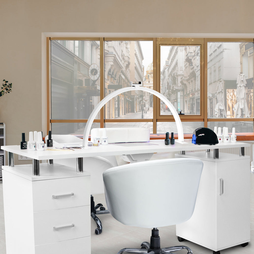 Enhance your salon's allure with our professional manicure table and LED half-moon lamp, seamlessly blending functionality with elegance.