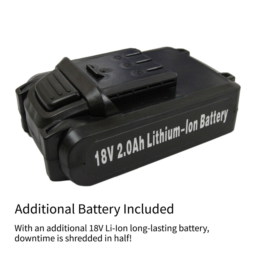 With an additional battery, downtime is shredded in half. Take advantage of the superfast Li-Ion charge time and never have to worry about being out of juice again!