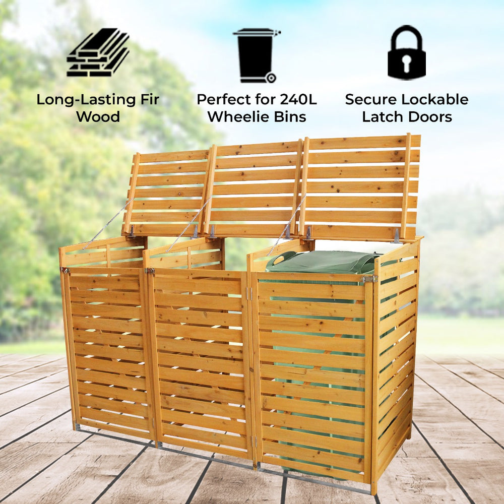 Create a stylish feature of your three otherwise ordinary 240L bins with MonsterShop’s beautiful, natural-looking wooden wheelie bin storage.