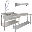 Start up your professional kitchen or add to your already bustling business with this bumper bundle featuring a commercial sink and pre-rinse tap, a catering table, two wall-mounted shelves as well as an extra pre-rinse tap to sweeten the deal.