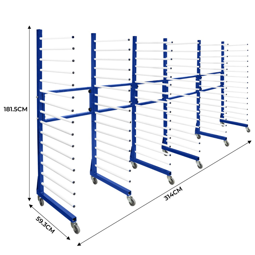 Each trolley boasts 15 convenient drying layers, providing ample space for your painted items and facilitating efficient and organised drying in your paint shop or workshop. With a robust powder-coated steel frame, these trolleys not only ensure durability but also add a sleek and professional finish, complementing the aesthetics of your workspace. The premium material contributes to their strength, boasting an impressive weight capacity of 25kg per layer, making them suitable for heavy-duty usage in industrial settings.