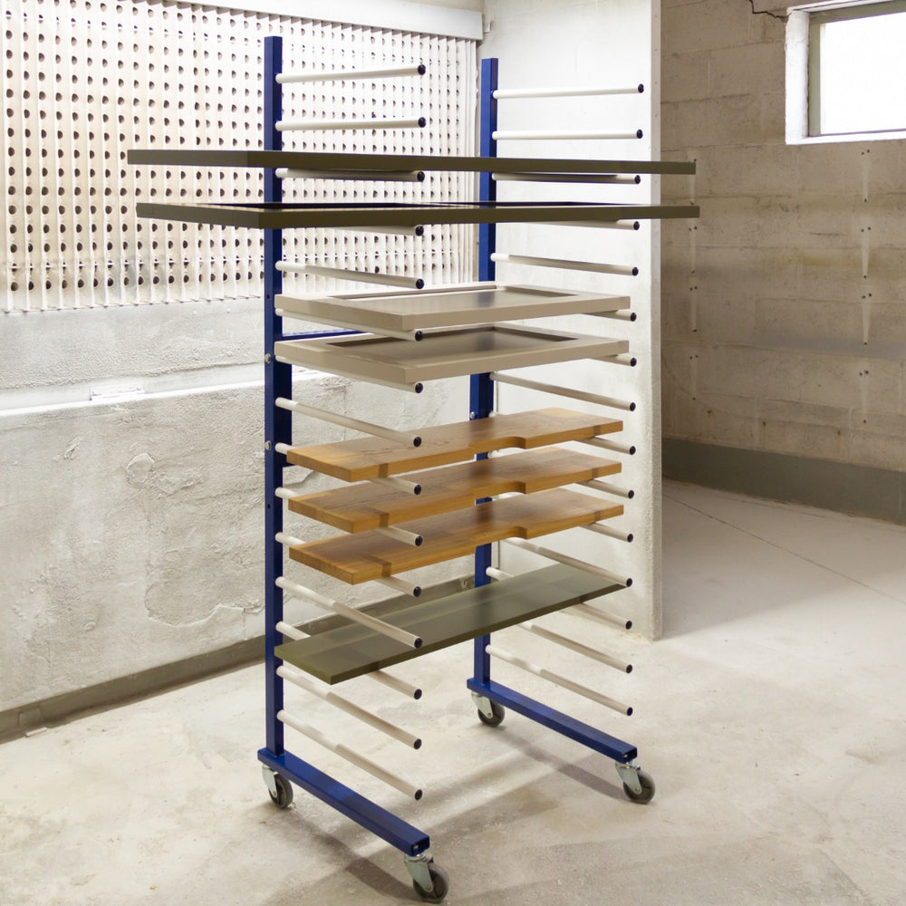 Our extendable drying rack stretches from 35cm to 65cm by simply turning the central partition of the frame. This gives you the flexibility to expand for storing larger pieces or to condense for saving space in the workshop.