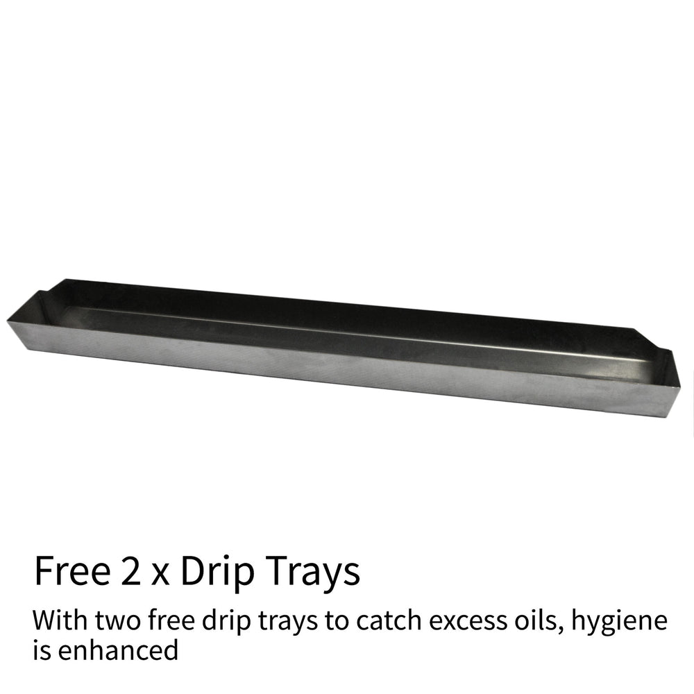- Two FREE drip trays included to catch excess oils