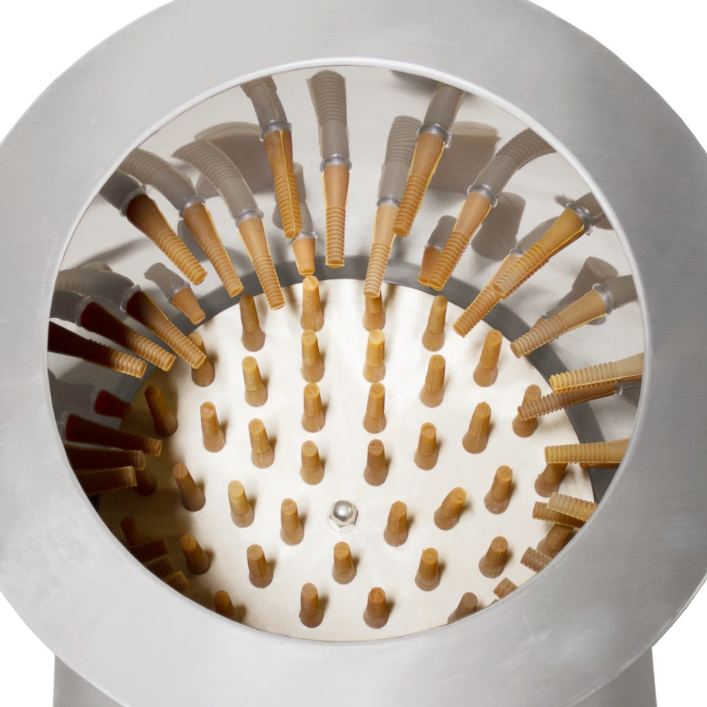 Made using hard-wearing stainless steel, the machine is extremely robust and built to withstand heavy use. Lined with 99 pre-fitted flexible rubber fingers, they quickly and effectively remove feathers by rubbing up against the poultry. The base of the drum is fitted with a spinning disc which moves the birds around the machine to ensure all parts of the bird come into contact with the fingers for a clean removal.