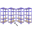 - Strong storage shelves with five shelves per unit
