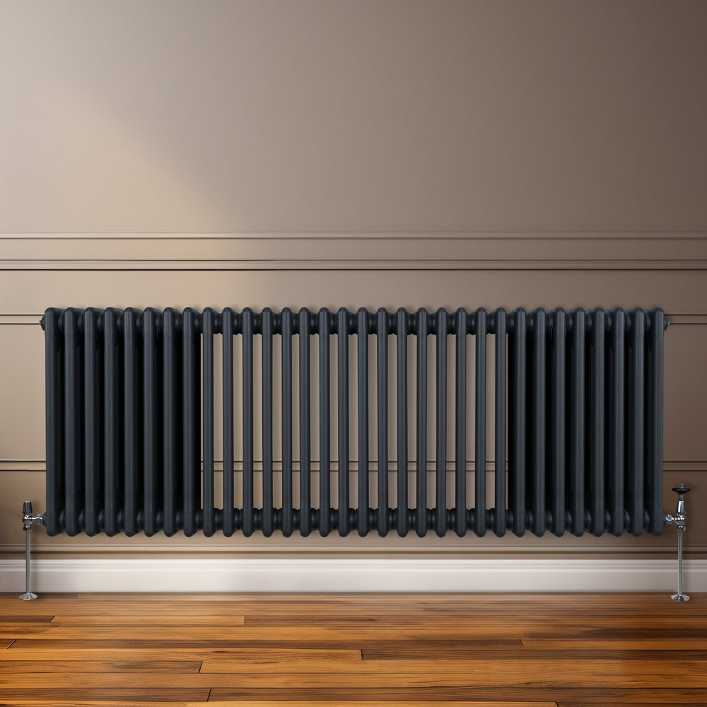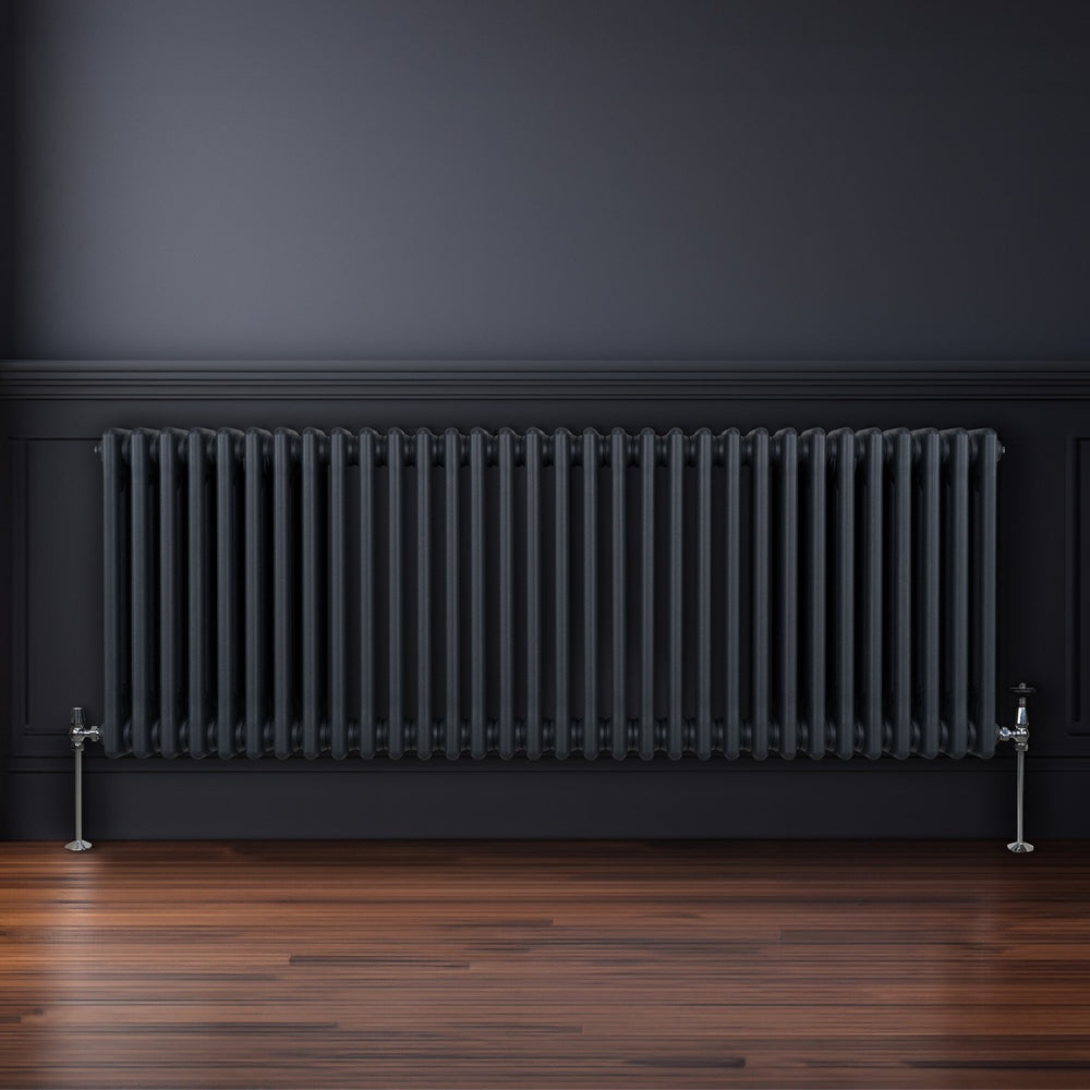 Infuse warmth into your home with our cutting-edge traditional style 3 column horizontal radiator in anthracite grey - a perfect blend of timeless elegance and modern efficiency.