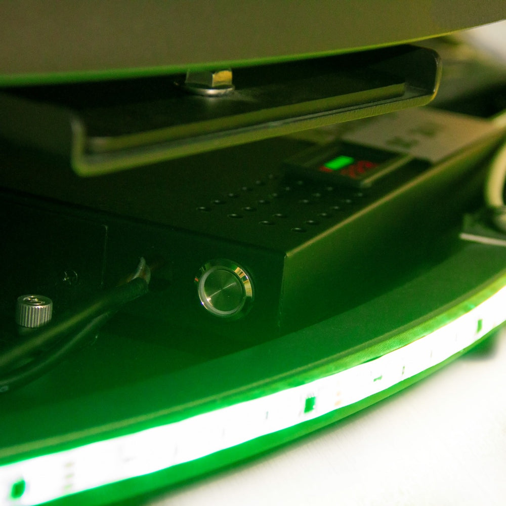 An RGB LED ring light ensures the lighting is always on point to capture high quality content every time. With 3 white shades, 12 dimmable settings and 40 RGB light settings to choose from – all interchangeable through a remote control – you can easily adapt it to suit the surroundings. This can be matched to the LED strip lights around the base to create a mesmerising feature that is sure to be the star of any event.