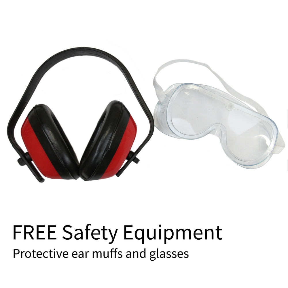 - FREE personal protection equipment (PPE) ear muffs, which should be worn at all times when operating the machine