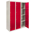 3 x Metal Storage Lockers - Four Doors, Red